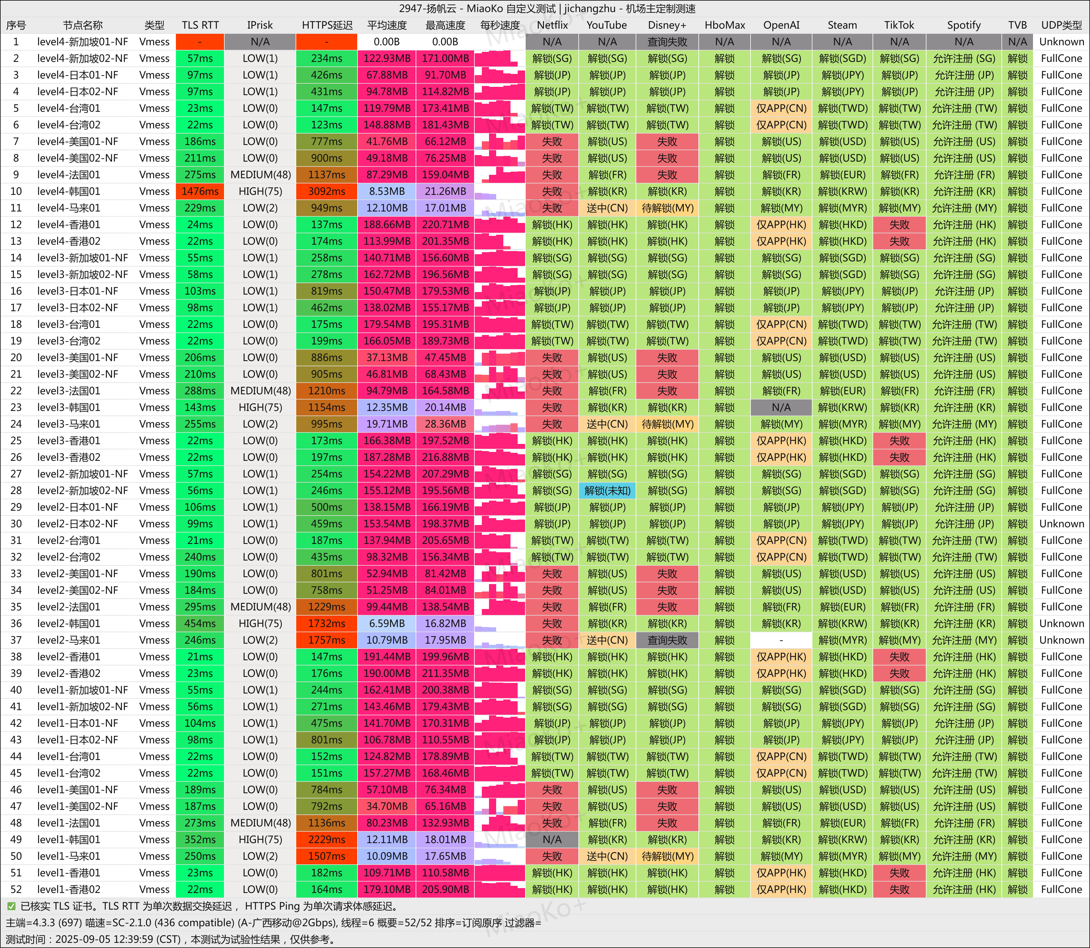 机场全部节点采用隧道中转优化和IPLC专线,网络结构清晰,能够有效降低延迟和丢包率,适合对连接质量有较高要求的用户。官方测速图显示其性能表现稳定,适合日常使用和部分对速度要求较高的场景。